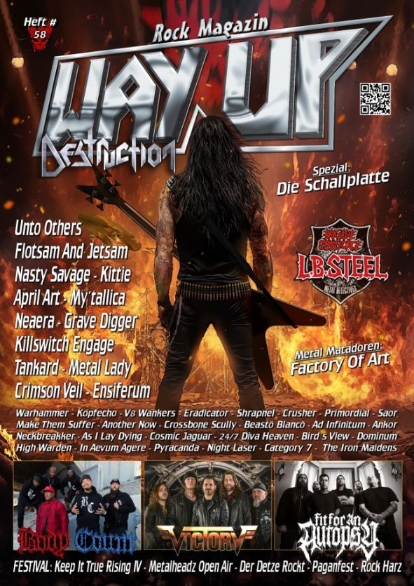 ich mache es mal kurz! Ausgabe #58 ist endlich am Start und diesmal wieder richtig "fett" und vollgepackt mit Interviews, Live Reviews, Bandvorstellungen und der Meinung der einzelnen Redakteuren zu den neuesten Alben eurer Lieblingsbands und deren die es vielleicht werden. Leider mussten wir den Preis an die gestiegenen Produkionskosten anpassen. Das WayUp Magazin ist nach wie vor ein non-profit Hobby und das soll es auch bleiben.